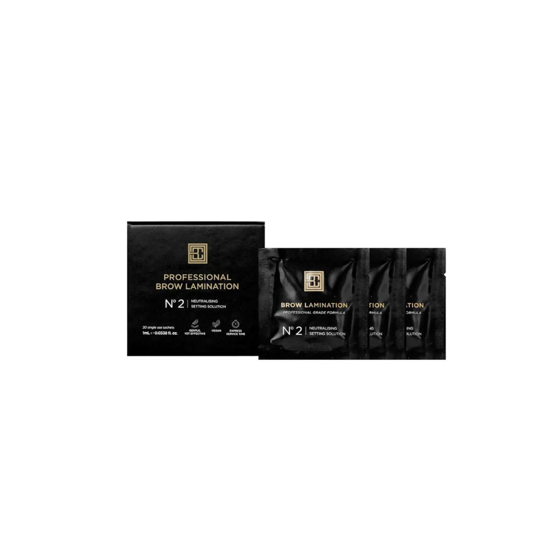 Le Step 2 Brow Lamination est spécialement conçu pour les professionnels de la beauté du regard. Il est disponible en sachets individuels ou dans le kit complet de lamination Brow Code, idéal pour une utilisation en salon.