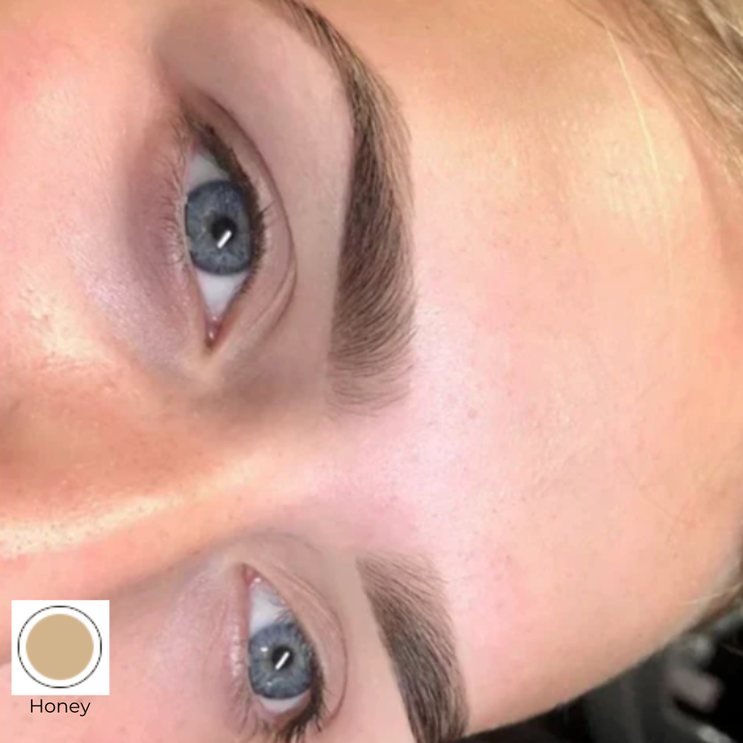 Dyotics propose 6 teintes de henné différentes, permettant de travailler avec toutes les couleurs de peau.- Honey : idéal pour les peaux blanches, les sourcils blonds,